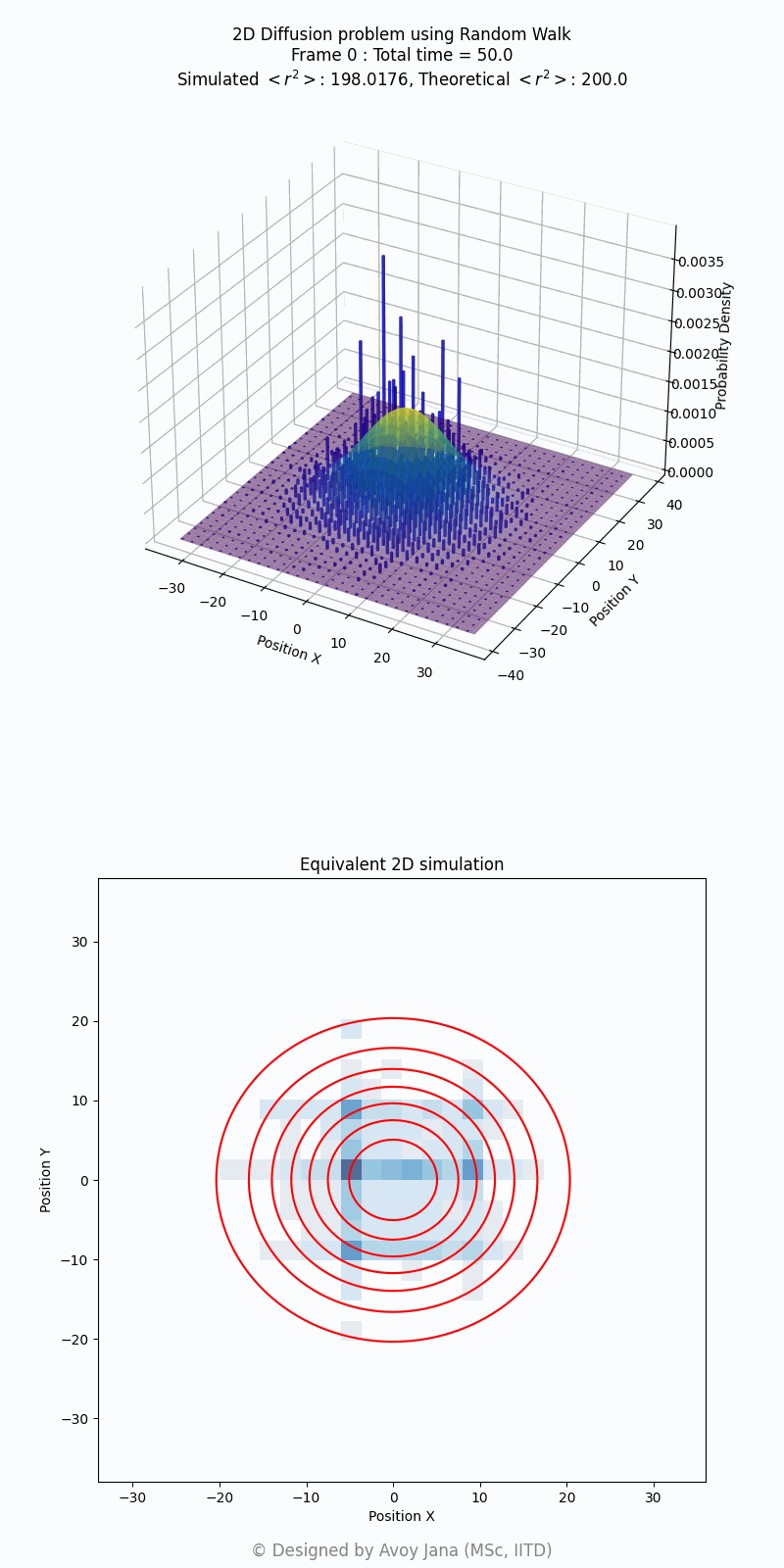 Number of particles, N = 10000, unit step-size, Δx = Δy = 1.0, unit step-time, Δt = 0.5